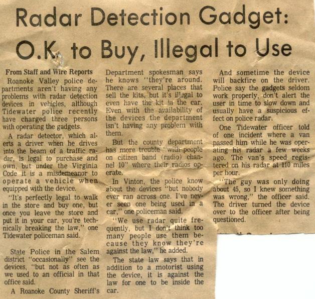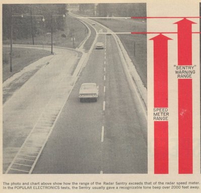 ![]() ![]() In the early 60's, a radar detector was available commercially. This detector was the Radar Sentry, made by Radatron, Inc. out of Tonawanda, New York. It was featured on the cover of the September, 1961 issue of Popular Electronics: According to Popular Electronics, the Sentry might not have been the first detector available, however, it was definitely the most functional and practical, and probably the first one worth noting. In the article it says that in the 5 years since the 1956 "Truth About Radar" article: "many microwave detectors have come and gone. Popular electronics has investigated each new speed-trap detector and has rejected some because they violated government regulations; others because of size, weight, or impractical construction; and one or two because they were simply 'wishful thinking'." ![]() ![]() According to tests done by Popular Electronics, the Sentry would warn the motorist 1000 to 2000 feet away from an operating "speed meter". The January 19, 1962 issue of Time Magazine wrote about the Sentry in an article titled "Burble & Squeak". In the article, they had this to say: "At high speeds Radar Sentry is almost useless; there just isn't time to slow down before police radar has tracked the car's telltale blip. But at speeds in the lower 60s, the gadget is a fairly faithful watch-bird within 300 ft. of the radar installation. Radar Sentries are being turned out at a clip of 200 to 500 a day by Radatron, Inc. in North Tonawanda, N.Y.. and the company claims to have sold 25,000 Sentries in the last six months." In the article, they go on further to say that Sentry did not make police happy at all, and that within a year of being introduced, the Sentry was banned in Chicago, Washington DC, and Conneticut. The units were later banned in Virginia too. ![]() ![]() Radatron filed for a patent on their device on August 3rd, 1962. The patent was granted on June 18, 1963: Patent# 3,094,663 - Microwave Signal Checker for Continuous Wave Radiations You can view the patent HERE The patent actually references the detector design in the January 1958 CQ article, so it is a good possibility that the Sentry is loosely based on it, with some improvements. The two schematics have some similarities. Interestingly, on page 12 of the patent, it also outlines a system that "makes it possible for the policeman to know when an approaching car is detecting his signal". An early concept of an RDD? ![]() Later versions of the detector that came in kit form, and were called the Driver Alert. These were sold out of Lafayette Electronics catalogs, or through Archer/Radio Shack. The Radar Sentry seems to have been produced for a number of years, at least into the early 70's. In the April 1973 issue of Hot Rod Magazine, they included mini detector test as a sub-article to their coverage of the Cannonball II. They had this to say about the Sentry: "We made almost a dozen runs at the gun, first with one detector on, then the other, then both, and came to the following conclusions: The Snooper (the expensive model) gave a loud and clear warning a full quarter-mile before the gun could get a reading, while the Radar Sentry gives a very weak and almost imperceptible signal about a tenth of a mile before the police get a reading. The Radar Sentry gives off its loudest warning at about a quarter of a mile before the actual radar unit’s location but a quarter of a mile after the unit has recorded your speed. In other words, when The Snooper goes off, you’ve got about 1000-1300 feet to hit the binders if you’re speeding; when the Radar Sentry goes off loud enough for you to hear it in a normal driving situation, you’d better reach for your wallet if you’ve been speeding, ’cause you’ve been had by The Man." |
